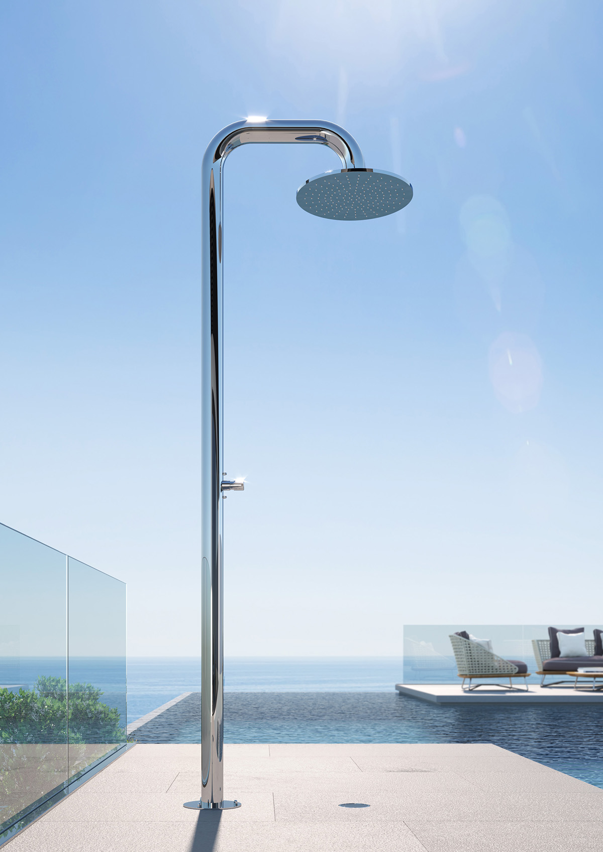 Fijación al suelo por medio de varillas, tuercas tapas y arandelas, todo en acero inox Aisi 316
